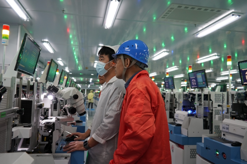 12月11日,佛山禅城供电局工作人员走进国星光电吉利工业园为流水线设备稳定运行进行上门“体检”,并提供降本增效建议。(杜萱摄)