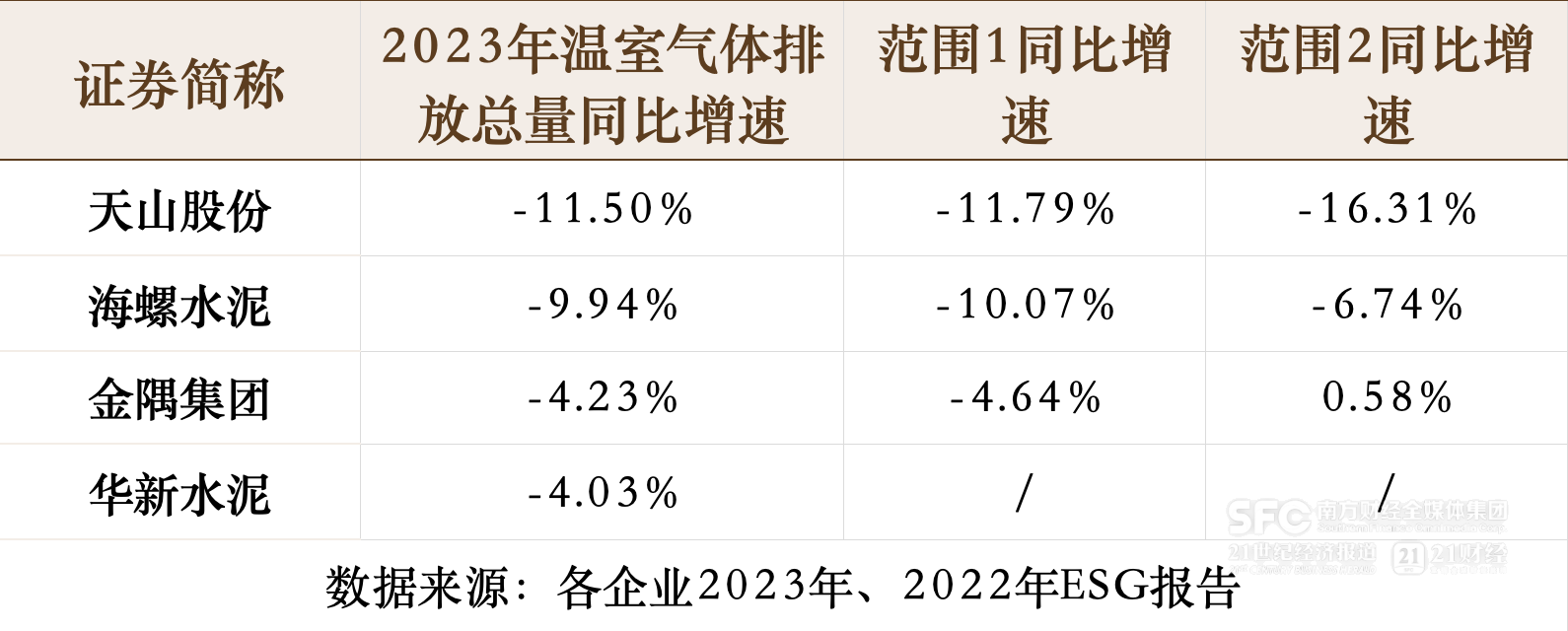 21世纪经济报道记者梳理这4家水泥企业2023年ESG报告后发现,仅华新水泥未披露细分的直接(范围1)、间接(范围2)排放量,其余企业都完整进行了披露。