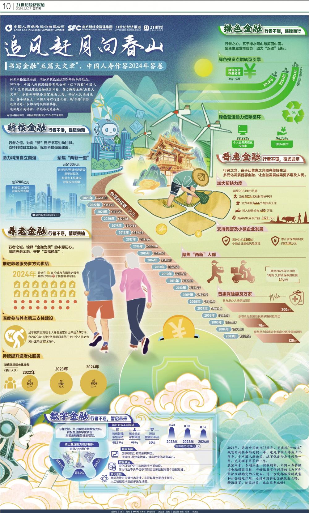 2024年,中国人寿保险股份有限公司(以下简称“中国人寿”)紧紧围绕建设金融强国目标,奋力做好金融“五篇大文章”,多措并举服务国家发展大局,守护人民美好生活。奋斗征程上,中国人寿以行者之姿,展“头雁”担当,迈出的每一步都与时代同频共振。