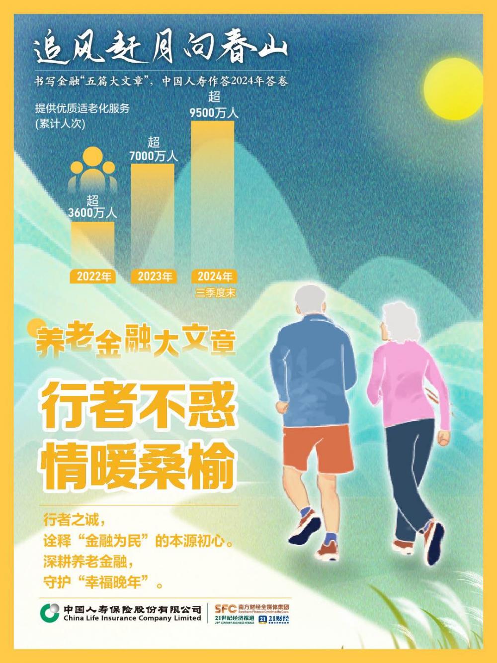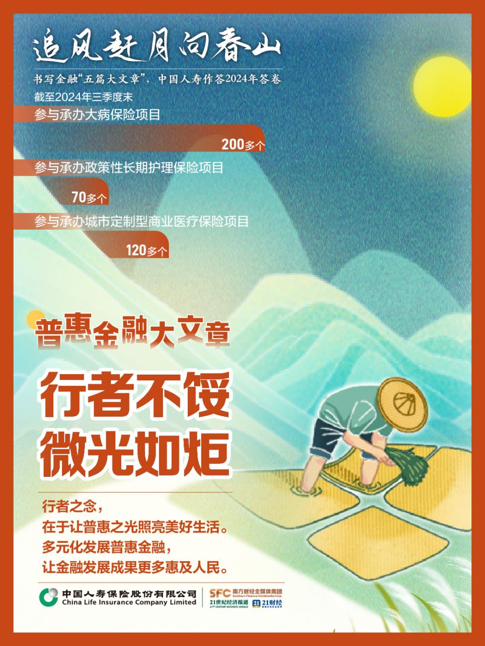 2023年10月底,中央金融工作会议提出,“做好科技金融、绿色金融、普惠金融、养老金融、数字金融五篇大文章”。这一年来,中国人寿望远山而力行,锚定建设世界一流寿险公司目标全力冲刺,以拼搏奋进的行者之姿,取得了沉甸甸的收获。