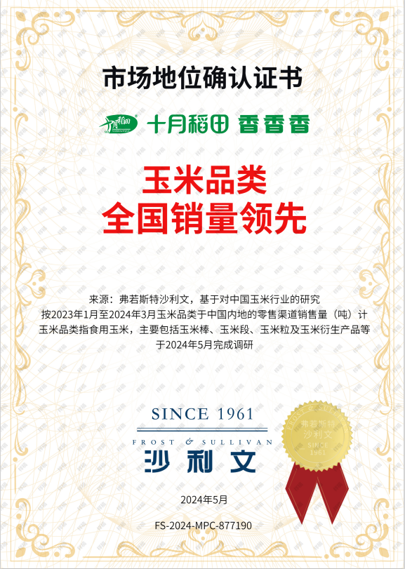 这家公司正打通厨房食品产业链。抖音平台数据显示,截至2024年12月,黄糯玉米单品链接累计销量已超过1184万单。根据弗若斯特沙利文数据,截至2024年5月,十月稻田玉米品类全国销量领先。