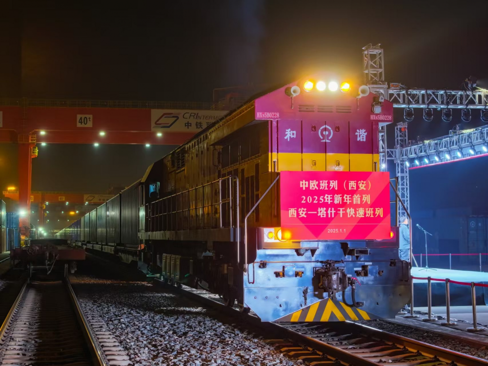 伴随着新年的钟声,陕西省发展改革委相关领导宣布“2025年中欧班列(西安)新年首列暨西安—塔什干快速班列,发车!”汽笛长鸣,满载着50个集装箱白色家电、纺织品和化工品等货物的中欧班列(西安)驶出西安国际港站,一路向西,经霍尔果斯口岸出境,最终到达乌兹别克斯坦首都塔什干,全程4667公里,历时约5天。