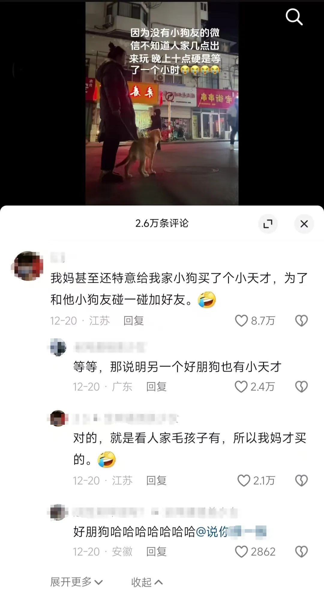 其中,很多还真的有后续,让整个事件成了连续剧:再出现在镜头面前时,它们的腿上或胸前已经多出了一块手表,搭配的是主人口吻的回应:“还好只是要个电话手表,要套房子妈妈真的买不起的,以后网上的东西少看一点好吗,我们只是普通人家的小狗,知道吗宝宝?”