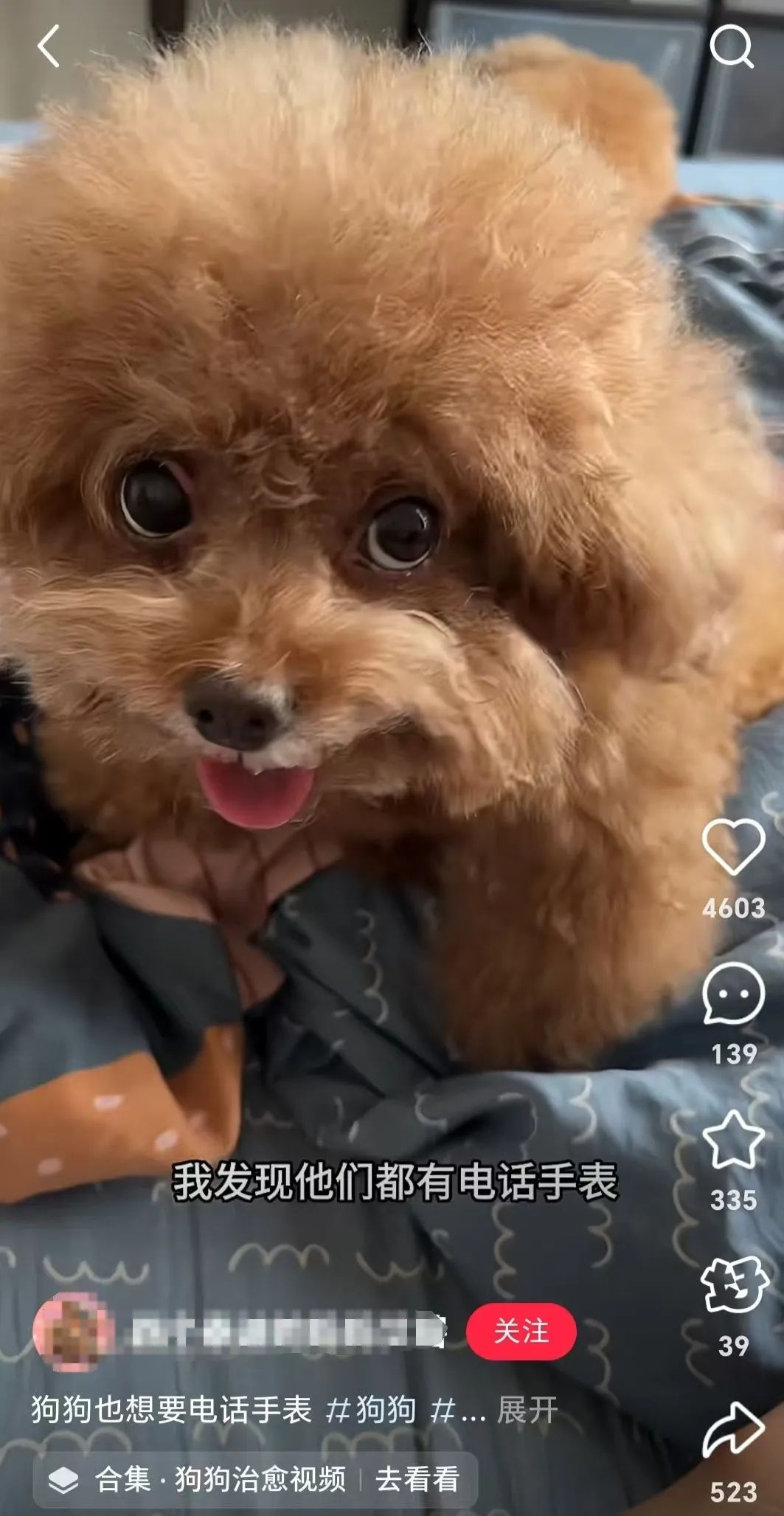 2024年12月中旬以来,抖音、小红书等社交平台上,超过2000只宠物——“狗狗也想要电话手表”的话题在抖音有2363个视频,在小红书上有709篇帖子,其中绝大多数是小狗,瞪着一双无辜的眼睛,用可爱的口音和语气,因为虚荣心向主人“要”一块电话手表,看上去基本与一个撒娇的孩子无异。