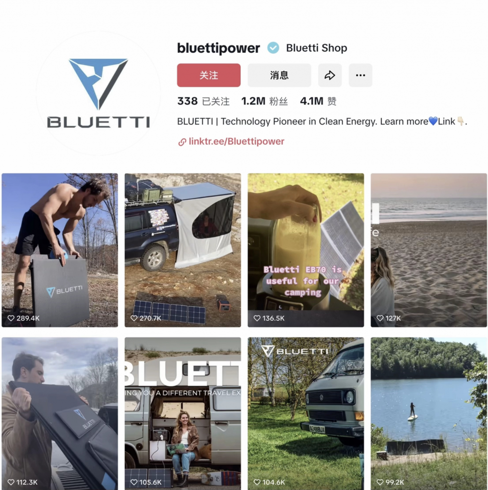 “我们在TikTok上投入2个月后,粉丝量就突破了10万,不到1年时间,就累积了100万的粉丝量。”Bluetti海外品牌负责人介绍,越来越多的消费者是基于TikTok上的优质内容,下单并购买产品。