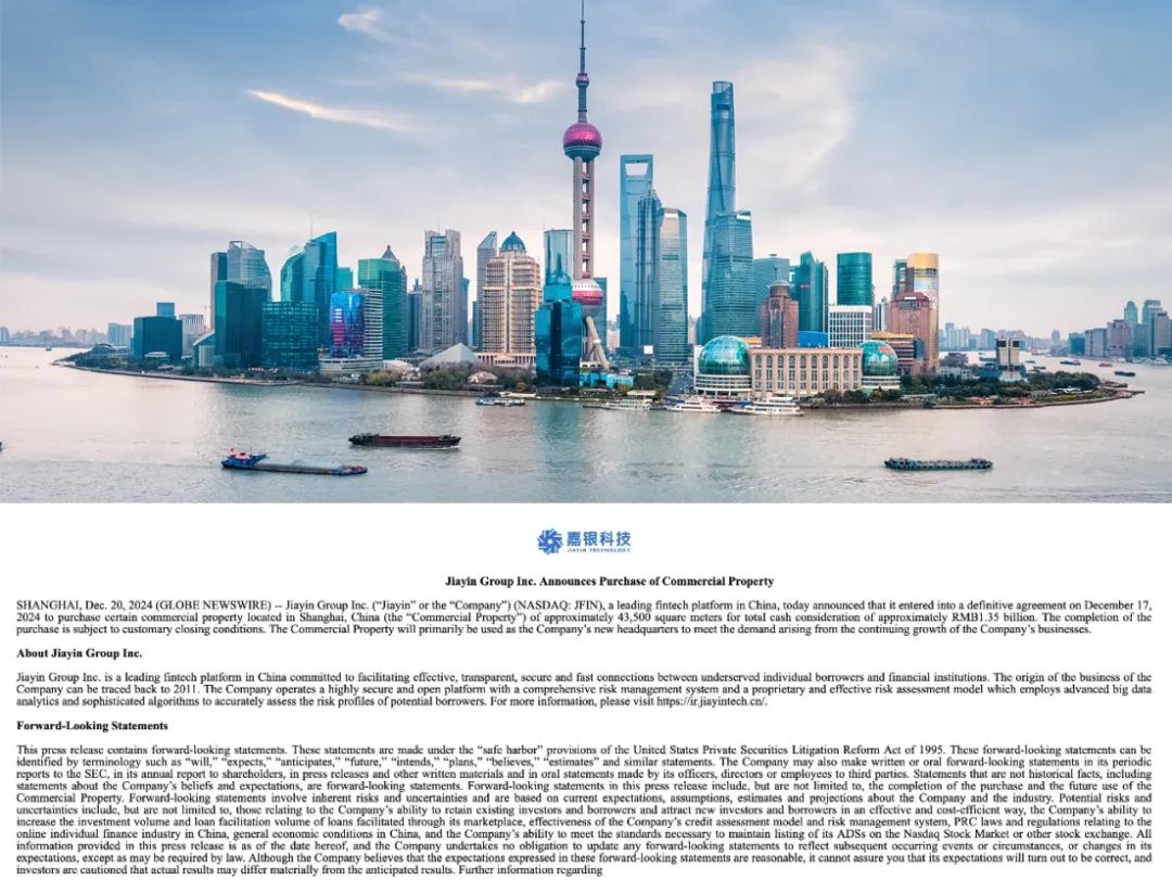 嘉银公告称,买楼是为满足业务持续增长的需求。待交割完成后,其将成为公司新总部。