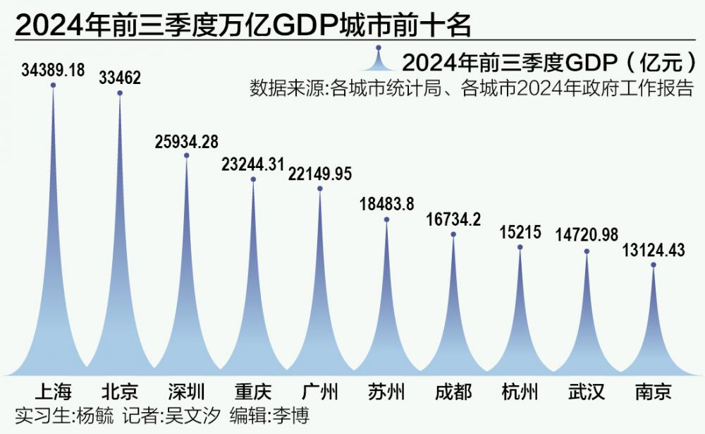 纵观其他万亿之城在2024年的表现,11座城市前三季度GDP已超万亿元。上海2024年GDP有望迈上5万亿元新台阶,这意味着我国将迎来首个5万亿城市。北京、深圳暂时稳居第二、第三位。共同晋级3万亿城市后,2024年重庆与广州的“第四城”之争仍有悬念。