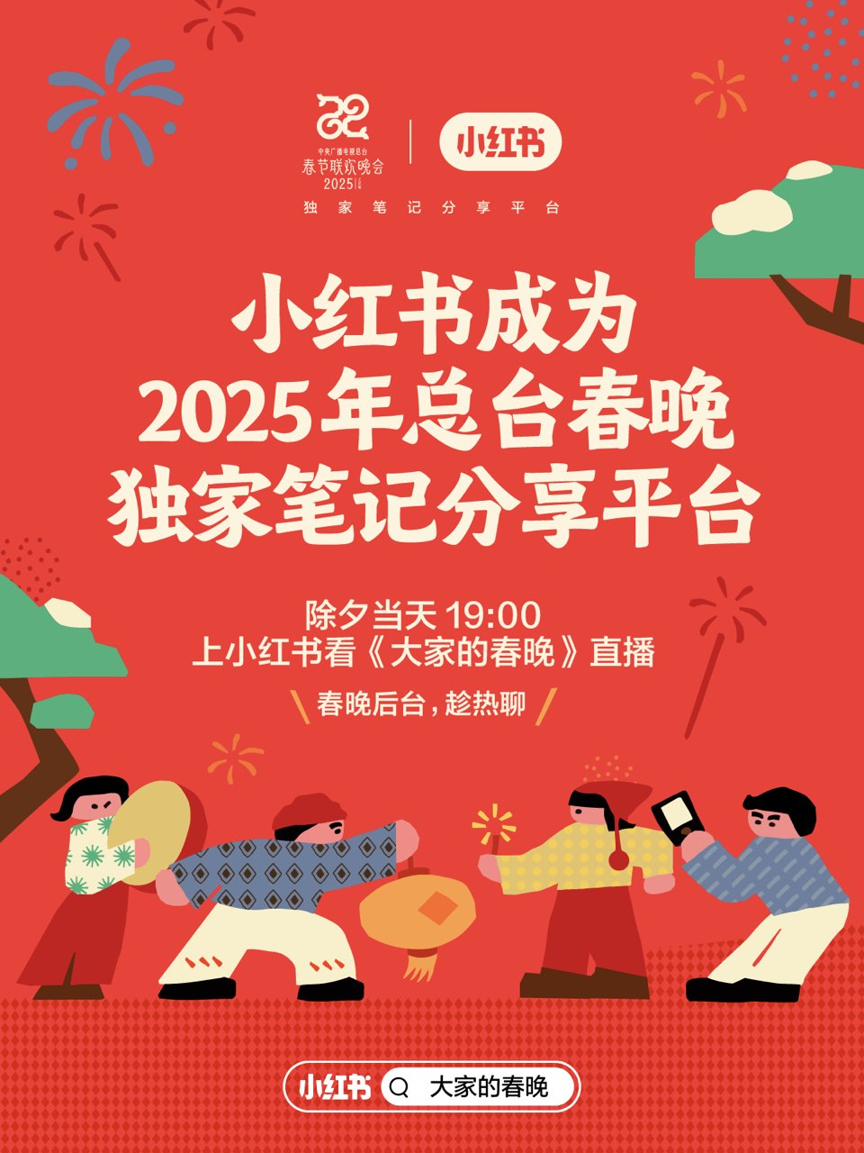 1月13日,小红书正式宣布成为中央广播电视总台《2025年春节联欢晚会》独家笔记分享平台。