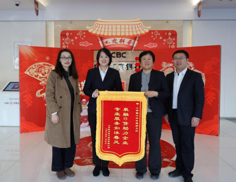 (办理全市首批泉融e贷的山东凯利电气股份有限公司向工行济南槐荫支行送来锦旗)