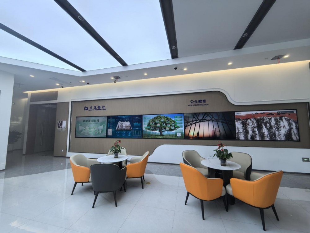 交通银行榆林分行积极响应国家“碳中和”战略,深化绿色网点经营理念,将神木支行打造为陕西省首家“运营碳中和”绿色网点,为行业树立新标杆,着力谱写绿色金融大文章。支行配有“碳运营”智能监测可视化平台,数据与国家级碳交所直连,其AI能耗自动管控服务支持对网点内不同区域的空调和照明系统进行自动调节和运营优化。支行“碳中和”运营大屏精细化分区展示网点能耗使用情况,支持实时监测、统计、预警用电量和碳排放量,通过“碳足迹环保树”互动式场景,引导客户践行绿色低碳生产生活方式。开业以来,累计吸引客户捐献33.3万步数,实现碳减排28.07kg。