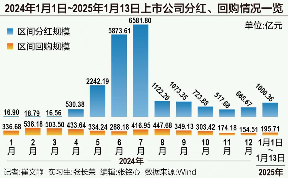 1月13日召开的2025年证监会系统工作会议提到,2024年上市公司实施分红2.4万亿元、回购1476亿元,均创历史新高。