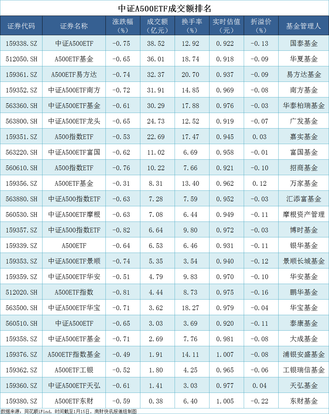 换手率方面,A500ETF易方达基金位居第一,达到20.70%。