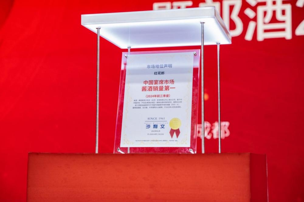活动现场,国际市场调查机构弗若斯特沙利文宣布:在以婚宴、升学宴、生日宴为主的中国宴席市场,红花郎销量位列酱酒赛道第一。