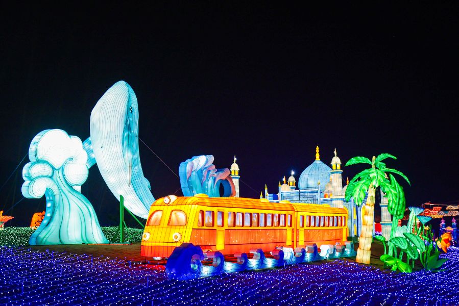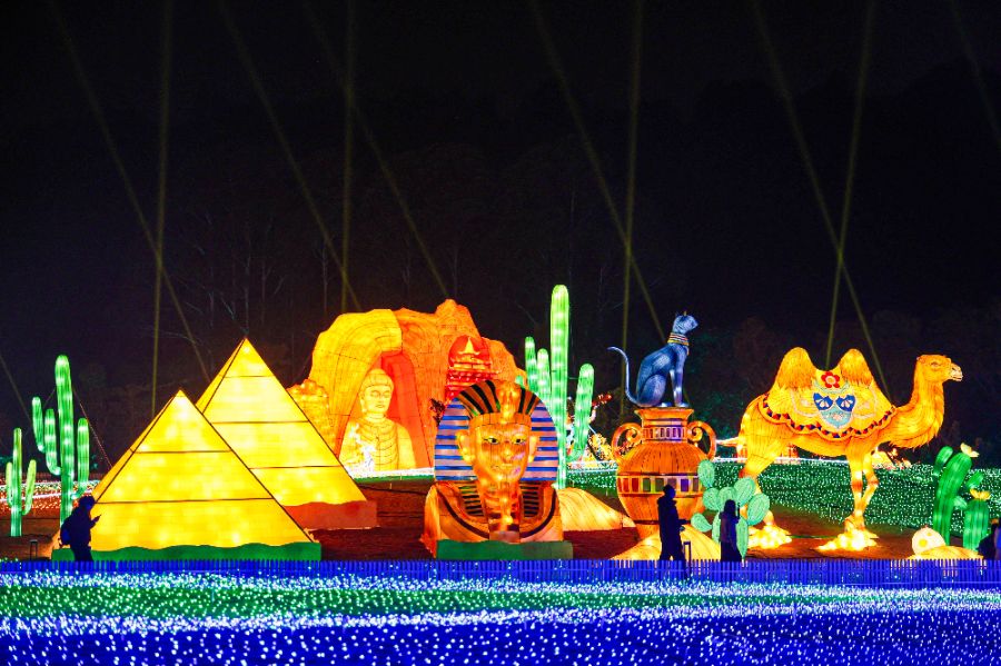 在“湾区画卷·产业腾飞”园区,充满科技感的灯组迸发出大湾区经济发展的无限活力;在“海上丝路·国际交响”园区,曼妙的灯光带领游客沉浸式体验“一带一路”共建国家和地区的异域风情;在“湾区记忆·千年商都”园区,非遗技艺、特色美食和本土年俗元素相互融合,讲述着大湾区古往今来的商都传奇;在“青春无限·潮玩乐园”园区,赛博朋克风格与传统新风潮跨界组“CP”,打造虚幻与现实的双重梦境;在“共聚湾区·贺岁新春”园区,游客可以感受到浓厚的“年味”“粤味”“岭南味”和“中国风”。