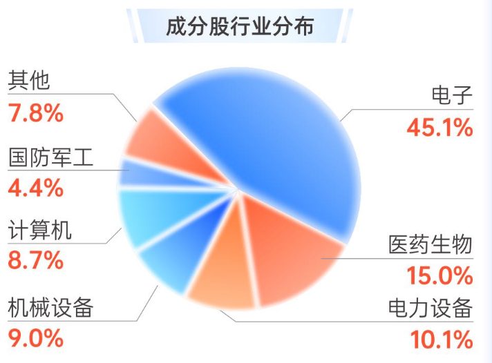 在行业布局上,科创综指行业布局更加均衡,全面覆盖科创核心行业。成分股聚焦科创属性较强的半导体行业、医药板块、新一代信息技术产业、新材料、量子信息、基金技术等产业。