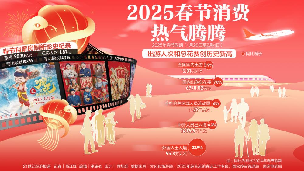 2025年春节假期,消费市场供需两旺,新场景、新业态持续涌现。从非遗项目激活文旅新体验,到“以旧换新”、消费券等促消费形式掀起升级热潮,从购物街区打造沉浸式消费新场景,到春节档票房刷新影史纪录,多元业态描绘出消费新图景。