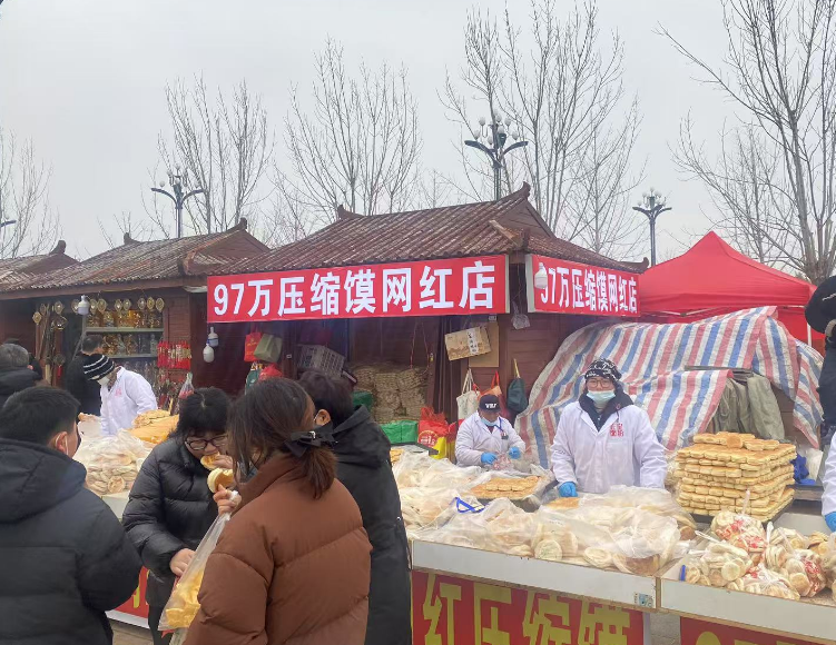 对“烧香”执念的国人,让2025年春节与往年类似,寺庙依然是春节顶流的存在。淮阳太昊陵前不到20平方的摊位费,2025年依然拍出97万元的天价。摊位前售卖的小型和大型压缩馍价格分别为10元/12个和10元/20个,若想在春节前后实现回本,需售卖压缩馍的数量可想而知,但这侧面也反映出春节前后太昊陵客流量之高。