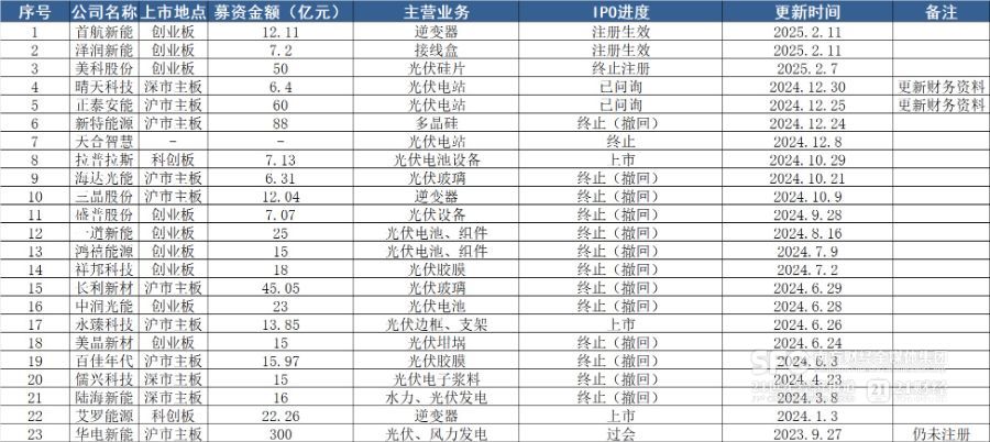 23家光伏公司IPO进展(2024年以来) 数据来源:公司公告、21世纪经济报道整理