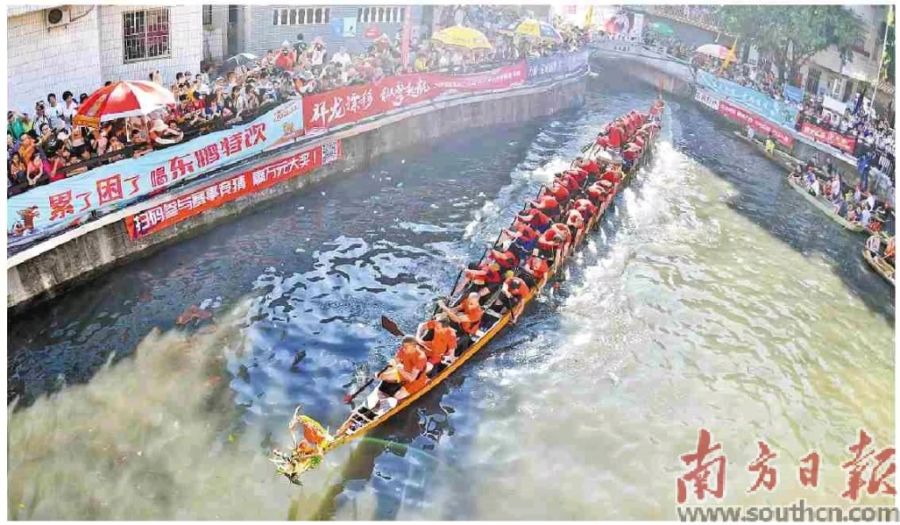 佛山叠滘龙舟漂移赛素有“水上速度与激情”的美称。南方日报记者 戴嘉信 摄