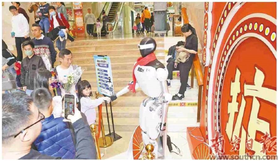 人形机器人亮相2025广州越秀西湖花市,吸引了众多市民前来互动。南方日报记者 钟志辉 张令 摄