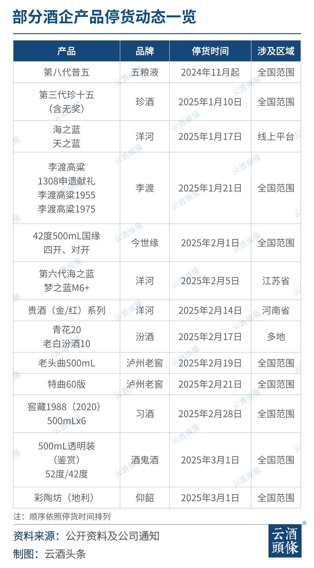 悲观者的视角则是,本轮“停货潮”牵头者均为头部酒企,且时机选在春节前后——这在以往堪称罕见,更常见的反而是借春节旺季行情涨价——而这显然更进一步印证了酒业的下行行情。