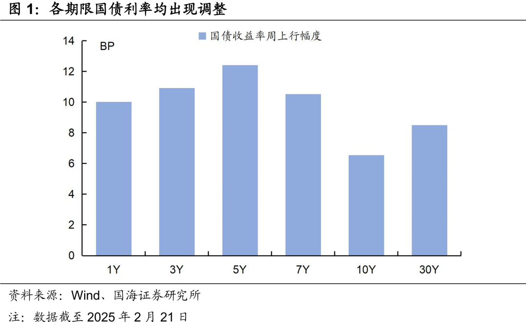 本周债市进行调整,资金面仍偏紧,DR001维持在1.9%以上,DR007上升至2.0%以上。短端利率带动长端利率上行,1年期国债利率上行10BP,长端表现稍好,10年期国债利率上行6.5BP。