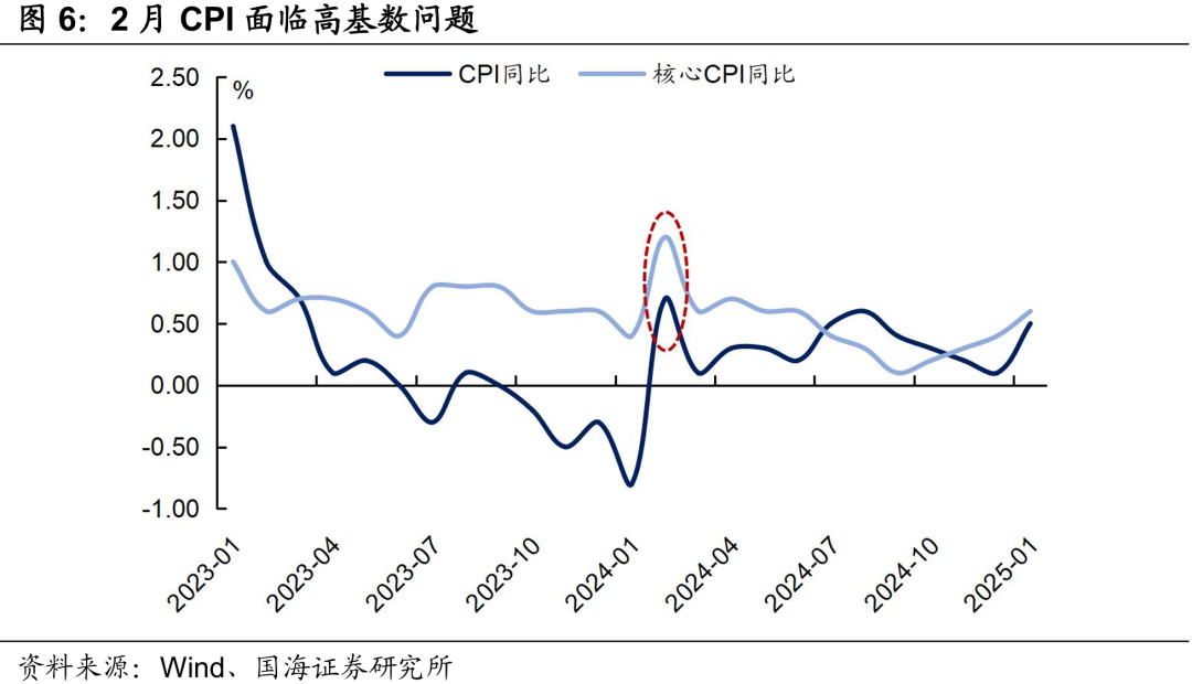 通胀方面,春节假期出行、消费热情高涨,1月CPI上升至0.5%,相较上月提升0.4个百分点,通胀有所升温。但2月受春节错位的影响,通胀水平回落可能性较大。