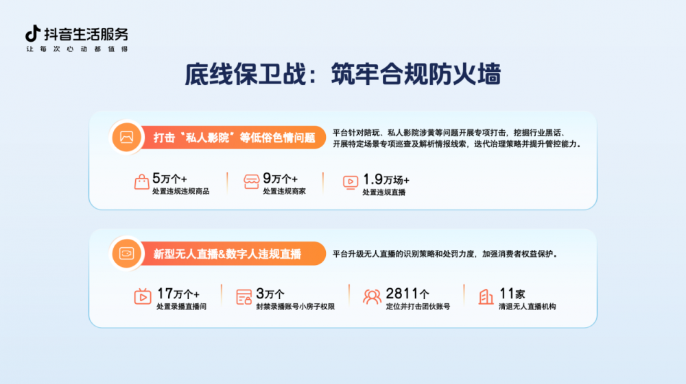 2025年,抖音生活服务将继续严守底线,优化内容生态与消费者到店体验,提升服务标准与能力,营造安心消费环境。