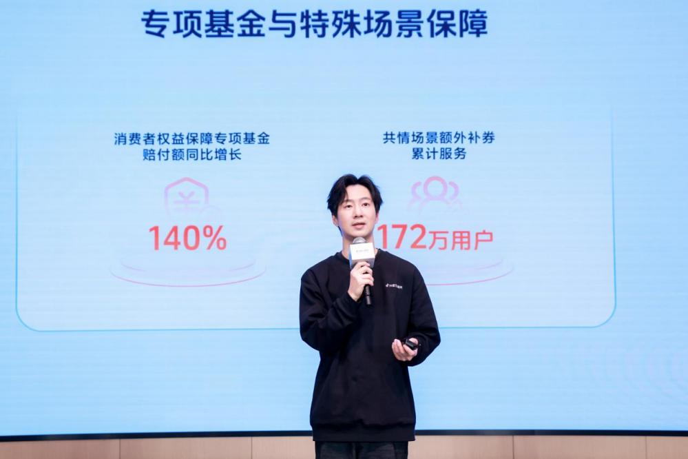 报告显示,平台2023年设立消费者权益保障专项基金,在用户遇到不可抗力或判责耗时久等情况时先行赔付。2024年,该基金保障与赔付力度升级,赔付额同比增长140%,并新设共情场景特殊退款专项基金,在妥善解决问题的基础上,根据实际情况提供额外优惠券补贴,累计服务超172万名用户。