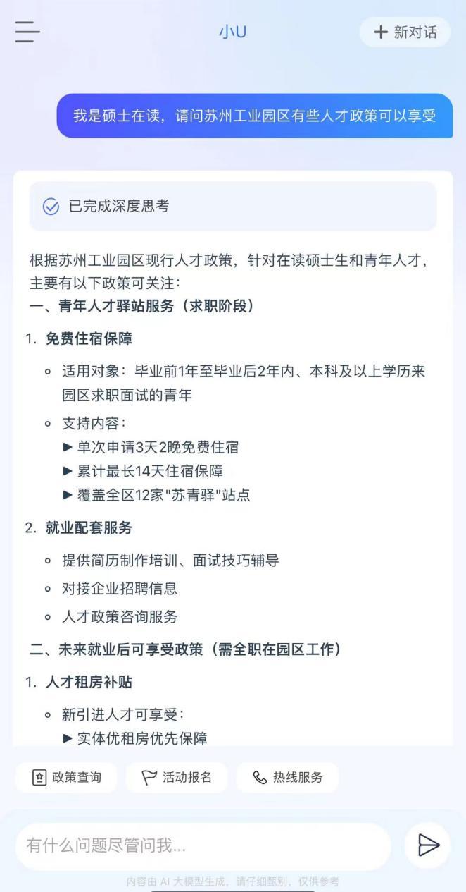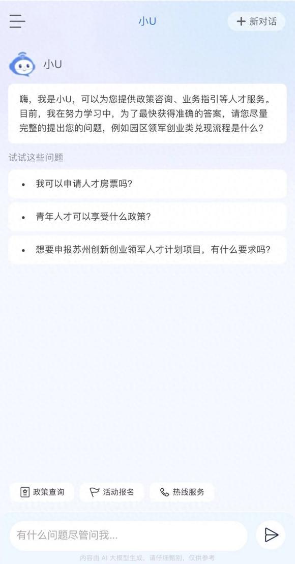“SIP才无忧”深度聚焦提升人才的使用体验,通过接入DeepSeek-R1“满血版”, 全新推出首个高智版AI助手“小U”,构建智能化人才服务体系,实现“政策秒配、服务无界”。