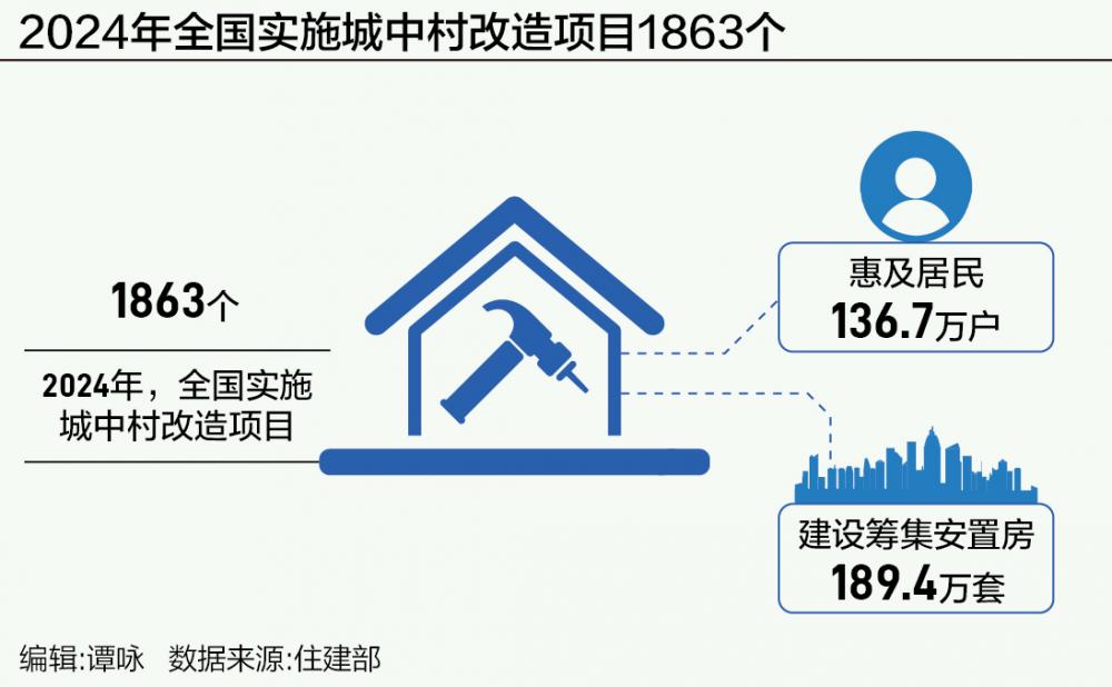 住建部数据显示,2024年,全国实施城中村改造项目1863个,惠及居民136.7万户,建设筹集安置房189.4万套,起到了消除安全隐患、改善居住条件和生态环境、推动城市高质量发展等积极作用,实现一举多得。