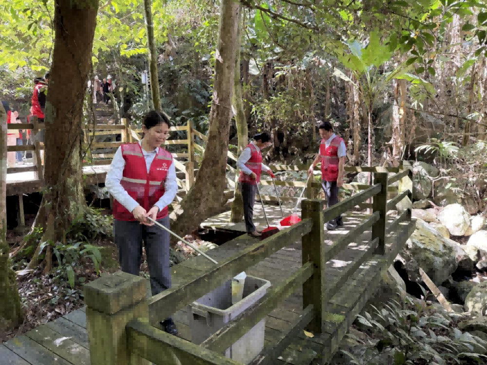 践行绿色行动:“红马甲”扮靓雨林栈道