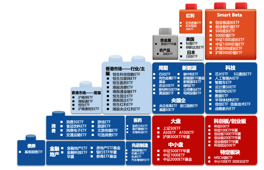 以华夏基金为例,该公司旗下的“科技十巨头”,全面覆盖AI板块的上、中、下游全产业链。在科技全产业链中,有恒生科技指数ETF(513180)、科创50ETF(588000)、人工智能AI ETF(515070);应用端布局的ETF有游戏ETF(159869)、恒生医药ETF(159892);算力端有芯片ETF(159995)、信创ETF(561570)、云计算50ETF(516630);终端布局的ETF有机器人ETF(562500)、消费电子ETF(159732)。