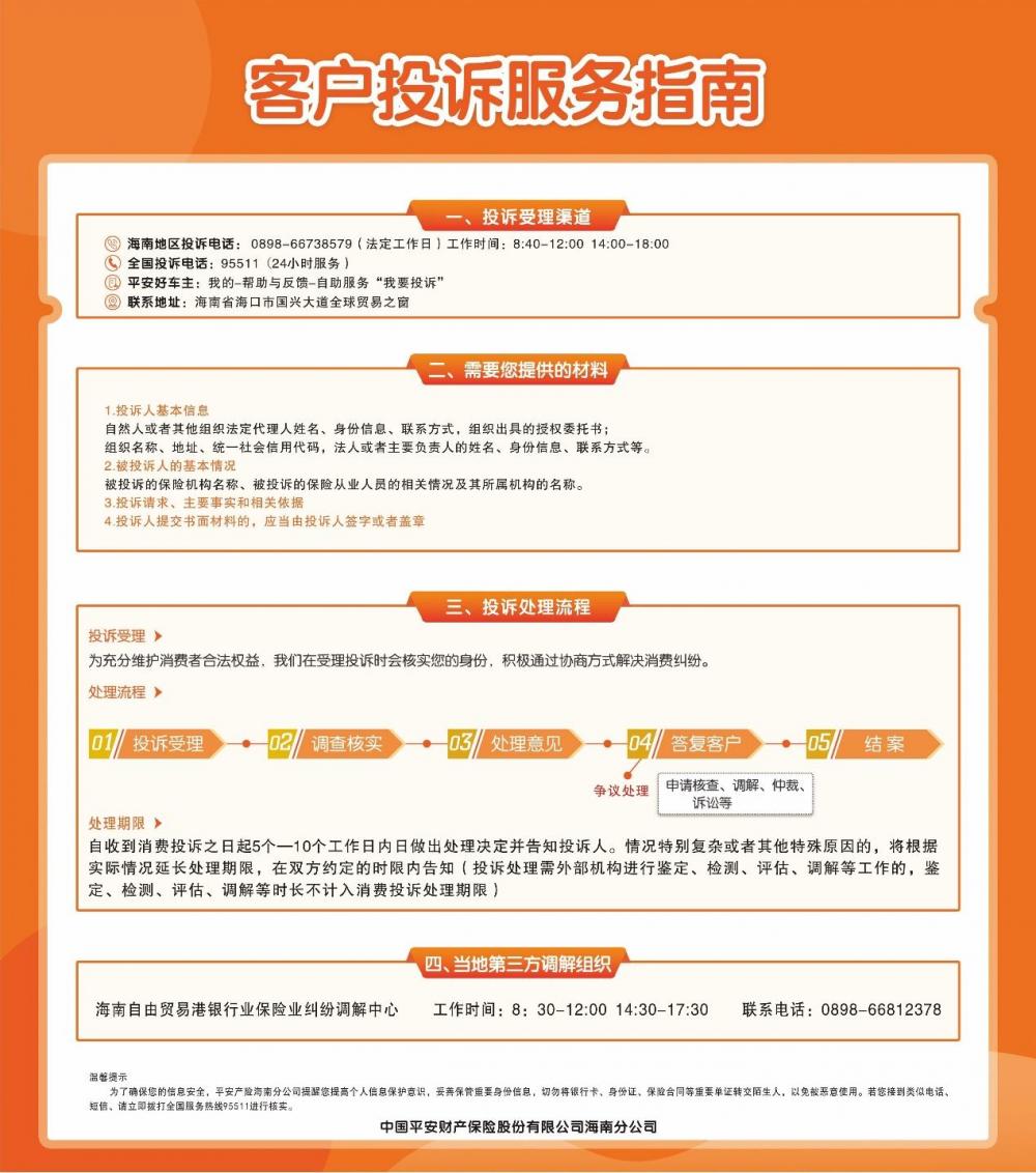 为让广大消费者掌握维权手段,提高维权能力,平安产险海南分公司开设3·15维权热线,并公示投诉受理渠道,及时接收处理消费者各类咨诉和建议,了解消费者的保险服务需求,第一时间受理和处理消费者投诉,维护消费者权益。