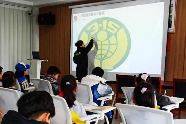 “发现过期食品要拨打12315”、“十周岁以下的小朋友不能自己进行大额消费”,在滨江社区活动室里,曹宅市场监督管理所执法人员化身为“故事老师”,通过ppt将晦涩的法律条文转化为“识别三无产品”“查看SC编码”等实用技能。不少孩子拿起记录本认真誊写防伪标识特征,积极和工作人员进行互动交流。