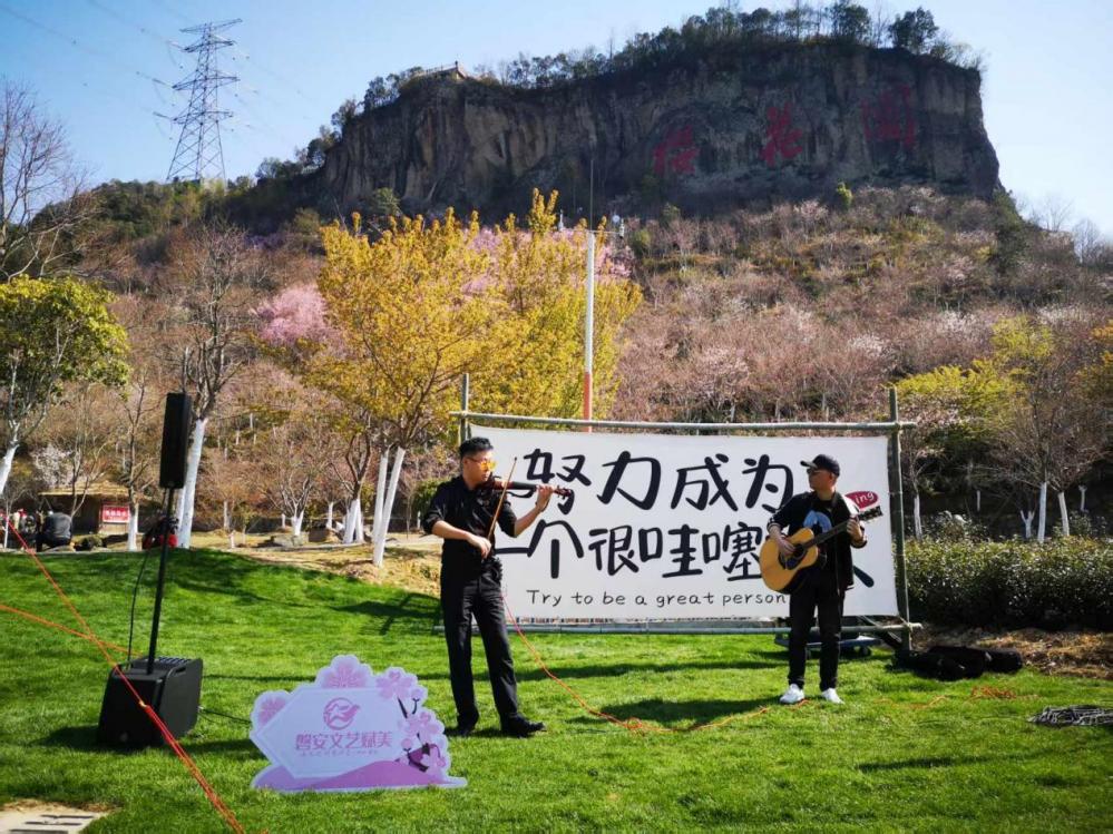 比赛现场精彩激烈,樱花园里更是人气爆棚。饺饼筒、烧饼、米糕、杨梅果……樱花园里的小吃共富集市,各式各样的特色小吃齐聚一堂,游客们游走其中,挑选着自己喜爱的美食。草坪上,乡村艺术节、乐队、樱花宝贝吟唱着春日的梦,灵动的舞者则在樱花树下翩翩起舞,小提琴、吉他、民乐交织着,给游客带来了一场融合自然之美与艺术之韵的视听盛宴。而后充岩区块的登山游步道,各式各样的人物打卡活动镶嵌其中,这场春日盛宴融合了运动、文艺与乡村风情吸引了众多游客前来打卡共同感受春天的美好与活力。