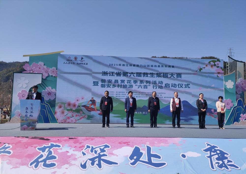 3月23日,浙江省第六届救生桨板大赛暨磐安县赏花季系列活动和乡村旅游“六百”行动启动仪式在双溪乡樱花公园举行。现场发布了磐安县赏花季系列活动和乡村旅游“六百”行动,还进行了“六百”行动授旗仪式。浙江省第六届救生桨板大赛开赛,省内16支队伍260余名桨板运动员在山水之间劈波斩浪,奋力拼搏。来自各地的游客零距离沉醉樱花海洋,还有樱花歌会、书画+民乐表演、百道药膳、特色小吃等,活动满满,精彩纷呈。