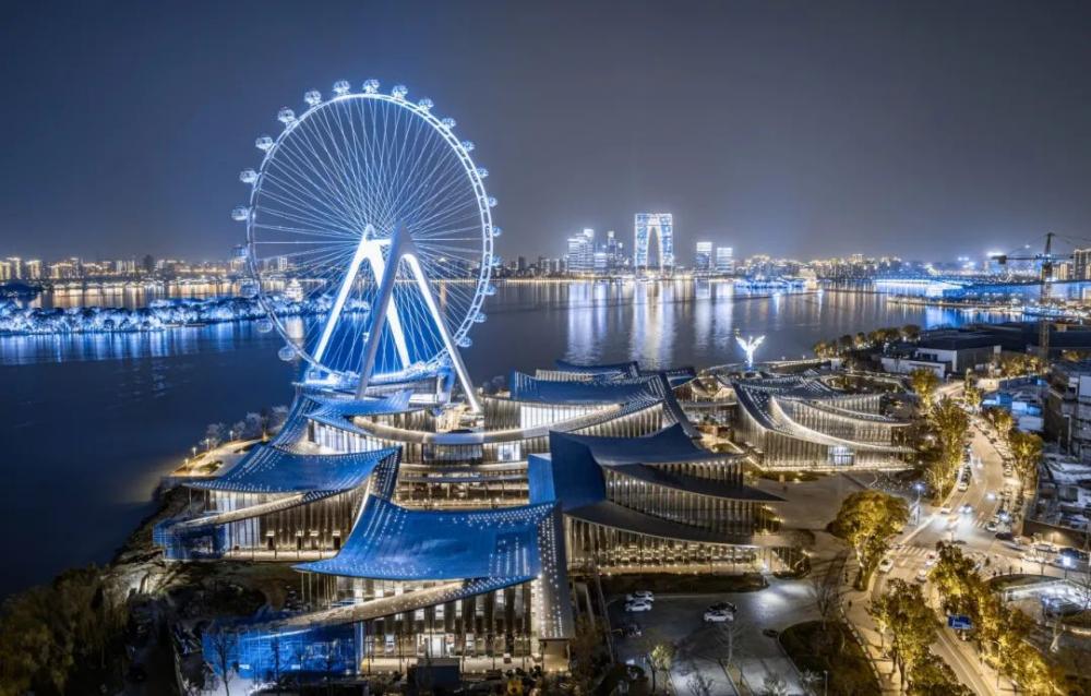 作为金鸡湖右岸“4+1”重点建设项目之一,“苏州之眼”摩天轮是全球第八座回转式太空舱摩天轮、亚洲最大水上摩天轮之一,以128米的高度刷新城市天际线,可360度俯瞰金鸡湖的壮丽风光。