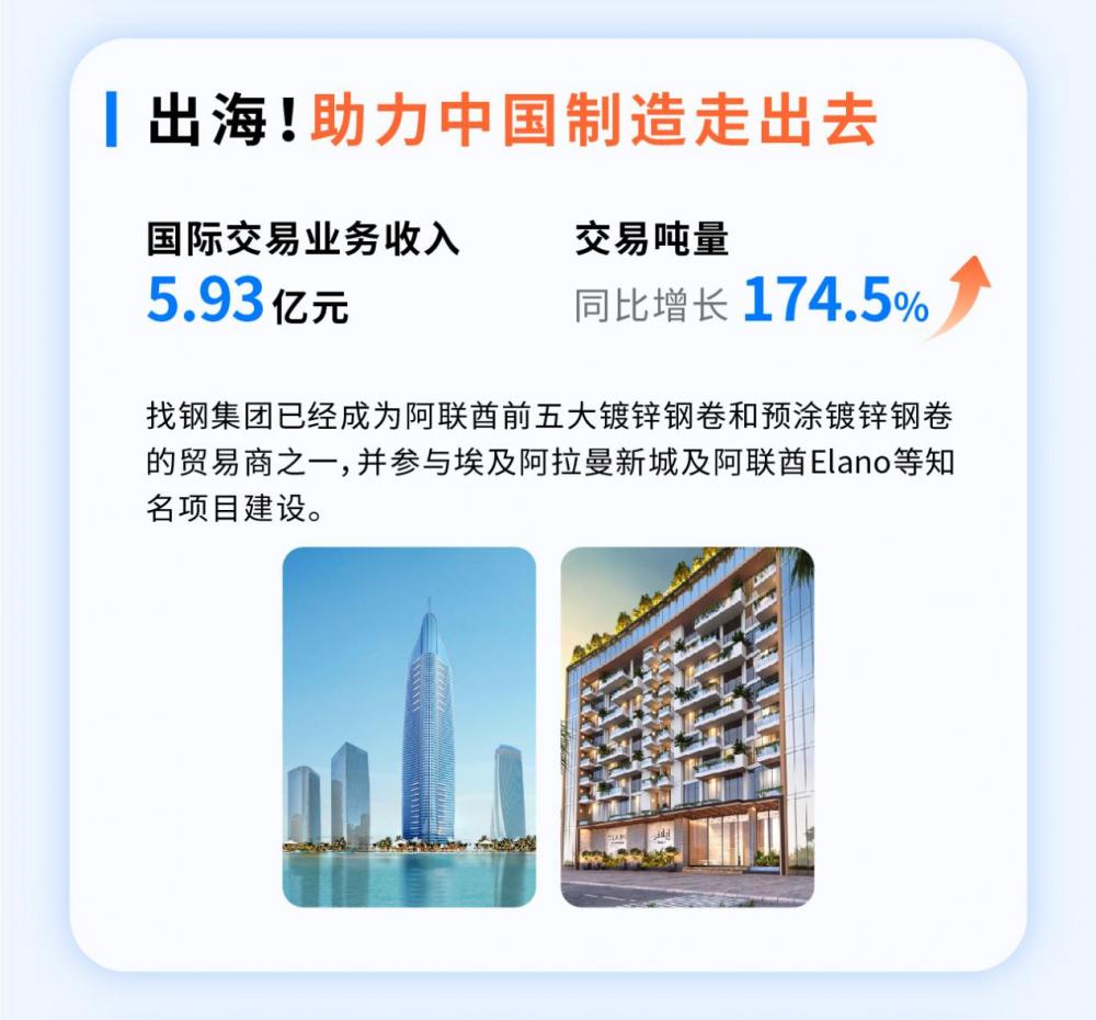 眼下,越来越多的中国企业沿着共建“一带一路”国家出海,以此为契机,2024年找钢集团进一步拓展国际业务,国际业务营业收入同比增长168.4%达5.93亿元,国际业务交易吨量同比增幅174.5%。