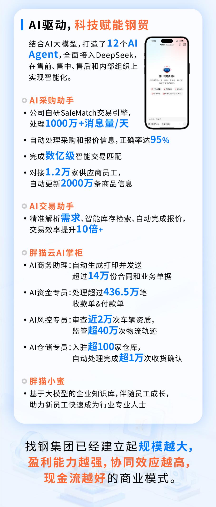 不容置疑的是,找钢集团的年度交易规模超过1800亿元,为AI技术提供了广泛的应用场景。