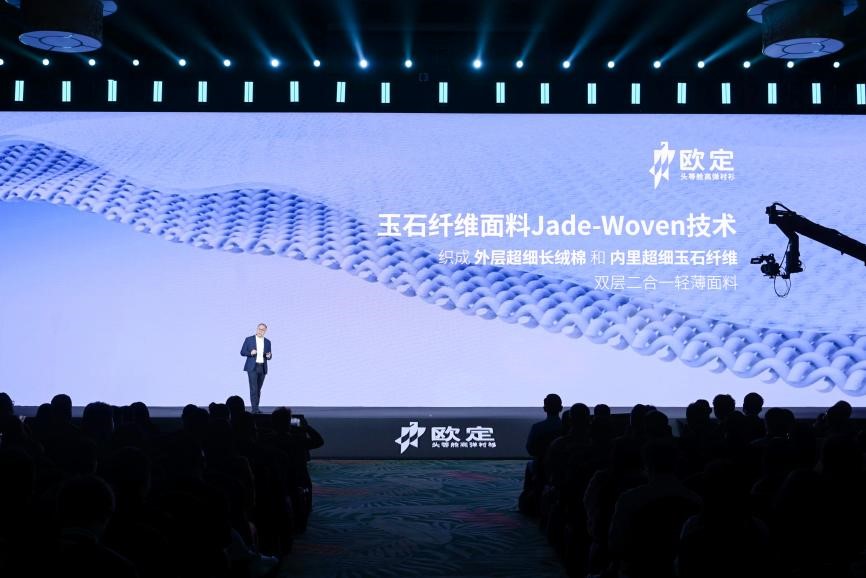 “天下苦传统衬衫久矣。”欧定品牌创始人朱家勇在开场直指行业痛点——传统商务衬衫在夏季陷入“厚了热、薄了透、软了塌、柔了不型”的四重悖论。商务男士的衬衫选择常陷入两难困境:维持专业形象往往意味着忍受闷热束缚。他们渴望一款既能保持高端体面,又能实现夏日清凉极致体感的衬衫,而市场现有解决方案多停留在单一功能层面。对此,欧定以"高弹×凉感"的乘积革命劈开行业迷雾,全球首发技术Cotton-Silk-Skin与Jade-Tech玉石纤维,实现8倍动态拉伸的"矛盾统一"与瞬间凉感系数 > 0.15的实验室数据突破。