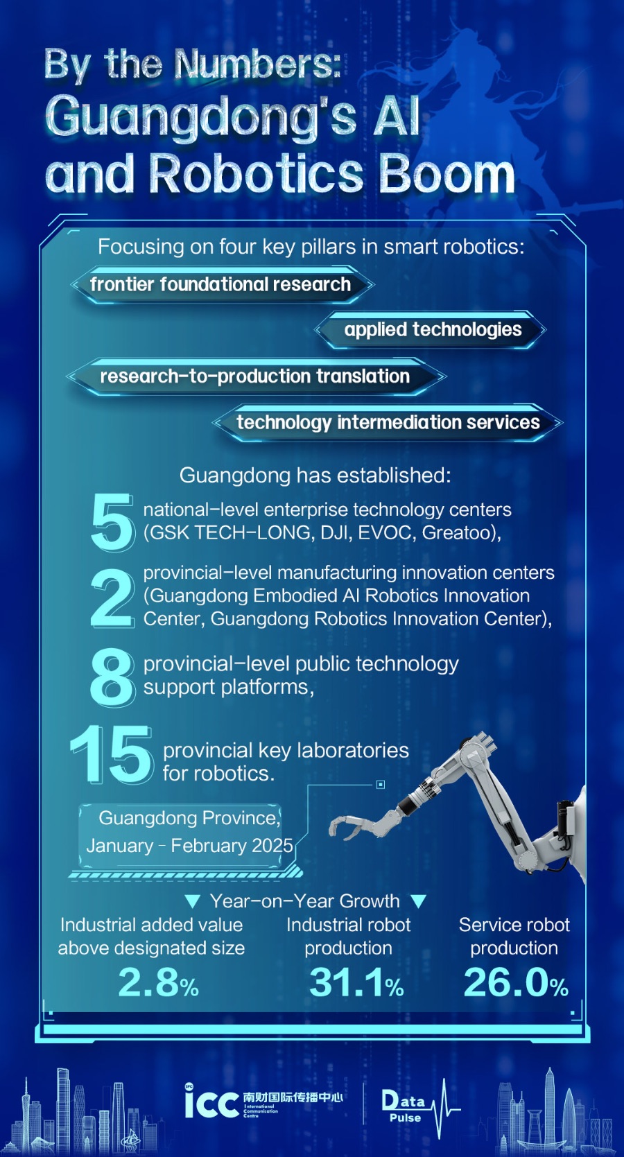 In 2024, Guangdong's core AI industry scale surpassed 220 billion yuan, securing its place at the forefront nationwide. Each year, the provincial government allocates 10 billion yuan in science and technology funding to accelerate innovation across sectors. On April 1, a press conference was held to unveil the Policies and Measures for Promoting Innovative Development in Guangdong's AI and Robotics Industries. Along the Pearl River, the race is on. But one question remains: How will Guangdong's robots climb the ranks?