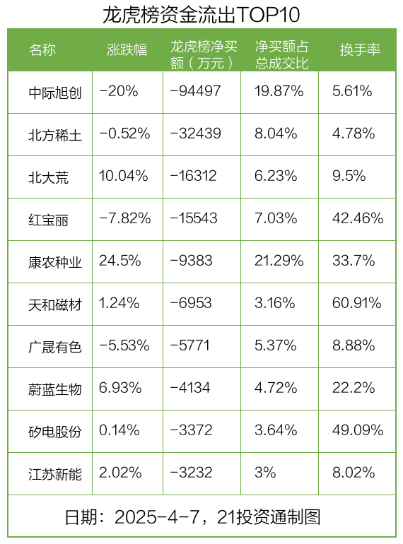 机构净卖出的个股中,金额最多的是北方稀土(600111.SH),当日收盘下跌0.52%,换手率为4.78%。前五大买卖营业部中有0家机构,净卖出0万元,占总成交金额的0%。