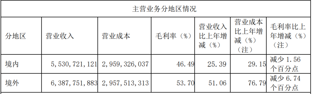 去年,海外市场贡献超五成收入,入账63.9亿元。