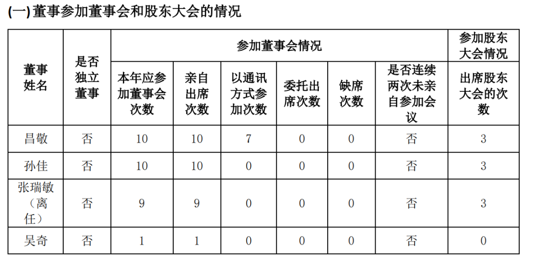 记者查阅年报发现,去年,其昌敬悉数出席董事会与股东大会。该年度,公司共召开10次董事会,其中7次,他以通讯方式参会。