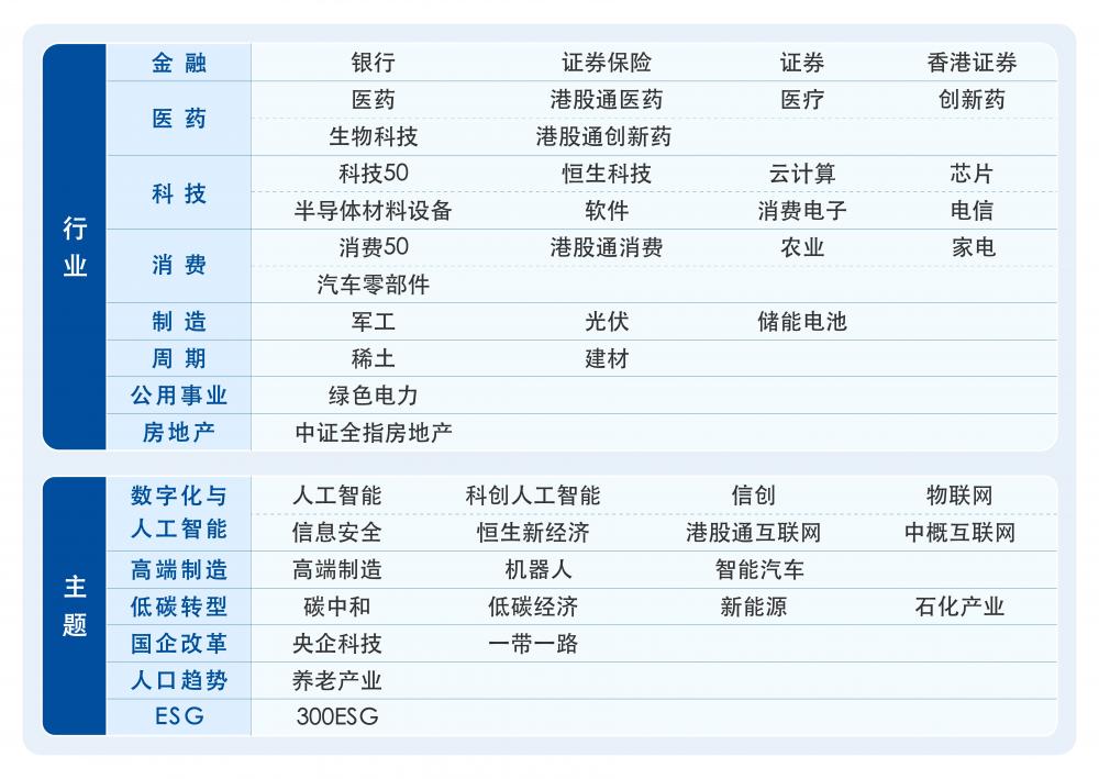 整合后的这八大行业和六大主题分类能涵盖市场上全部已有的行业和主题指数产品,投资者可以借助这个分类更清晰、便捷地对各类行业或主题ETF进行检索、比较和投资。