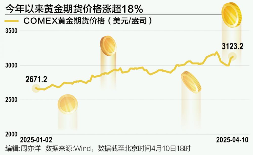 随着美国关税政策调整,全球金融市场避险情绪升温。截至4月10日,COMEX黄金期货价格年初至今涨幅飙升超18%。