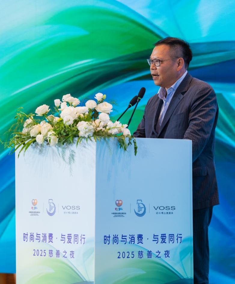 当晚,作为本次活动影响力的外向延伸,论坛还举办了2025“时尚与消费·与爱同行”慈善之夜晚宴。VOSS芙丝中国总裁黄瑜胜在发言中表示,作为品牌源自挪威现已经深植中国的高端天然水品牌,VOSS芙丝中国的“纯净未来”计划已经为偏远地区学校送去数十万瓶天然健康饮用水,更通过改善当地净水设施,持续投入乡村教育爱心基金,让更多偏远地区的孩子和家庭受益,同时让环保理念生根发芽。