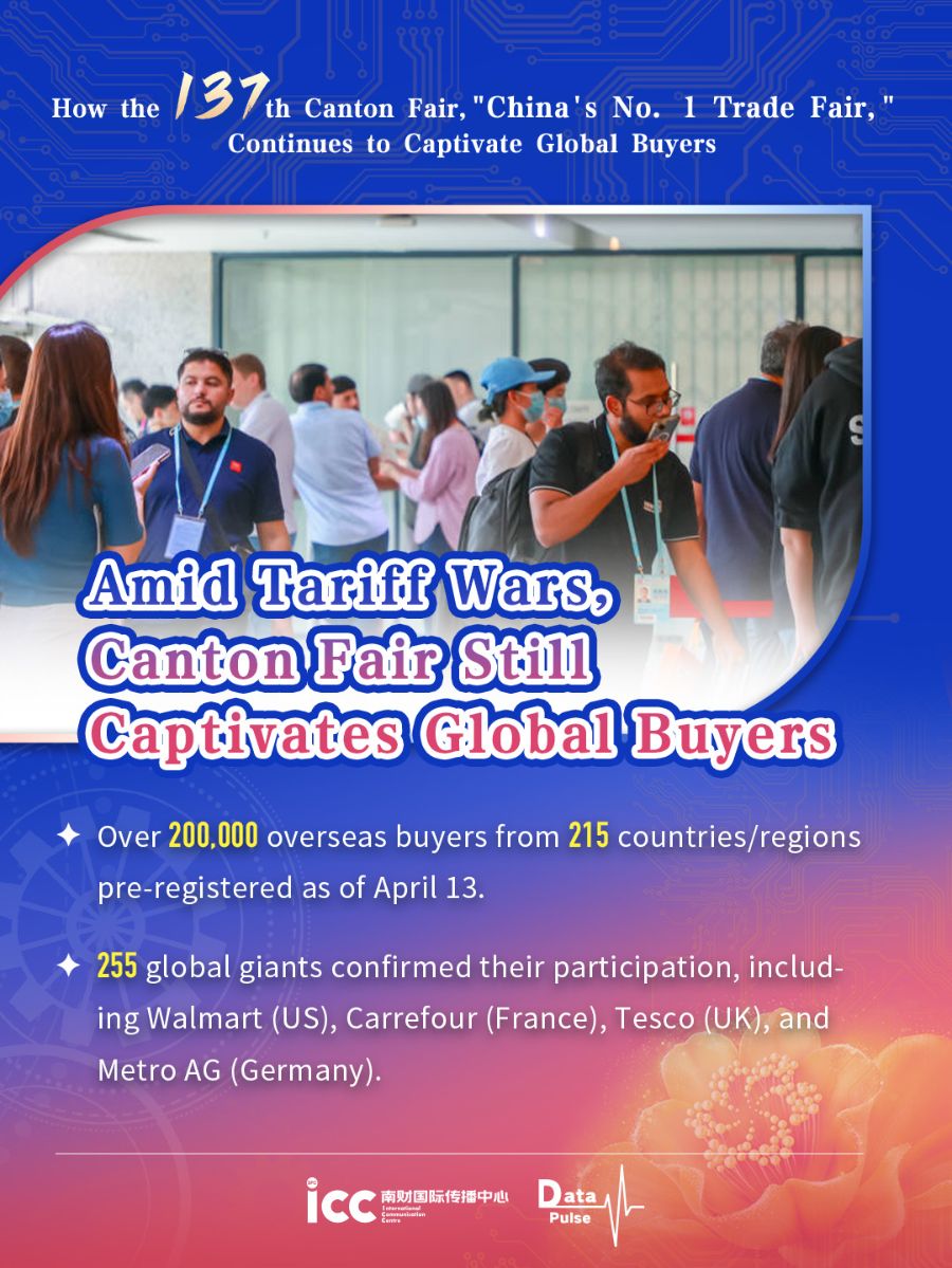 Despite tariff headwinds, this year's Canton Fair has already attracted over 200,000 overseas buyers from 215 countries and regions as of April 13th, with 255 global giants like Walmart and Carrefour confirming attendance. Let's find out how the Canton Fair continues to win the hearts of global buyers!