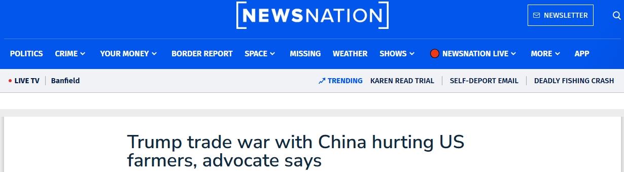 △美国媒体援引美国农民工会主席的评论:特朗普发起对中国的贸易战伤害了美国农民。